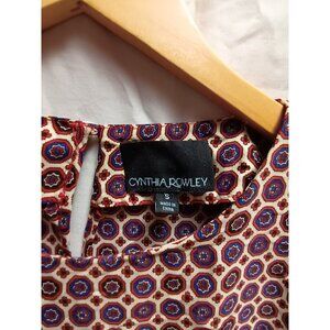 Cynthia Rowley Shirt Womens Small Multicolor Geometric Print Blouse 3/4 Sleeve