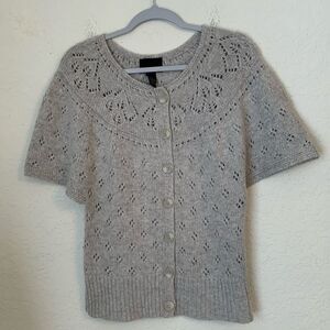 Cynthia Rowley Short Sleeve Angora Blend Knit Grey Cardigan Size M