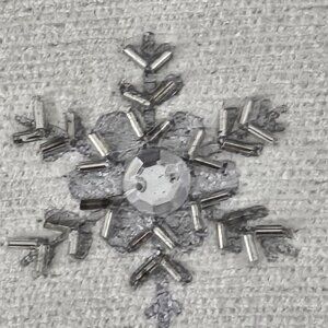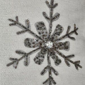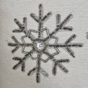 Cynthia Rowley Silver Beaded Snowflakes White Let it Snow Holiday Large Pillow