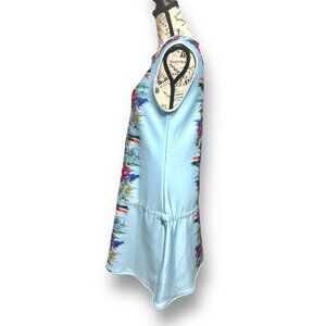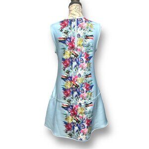 Cynthia Rowley Size Large Blue Floral Scuba Mini Dress Pockets Artsy Boho Resor