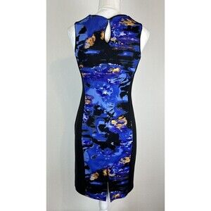 Cynthia Rowley Sleeveless Blue Black Gold Print Cutout Sheath Dress Dress Size 4