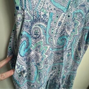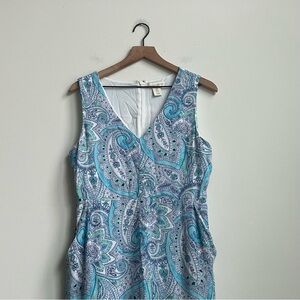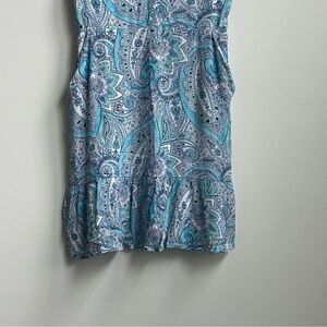 Cynthia Rowley Sleeveless Dress Size 10 Blue Paisley V-Neck Ruffle Hem Pockets