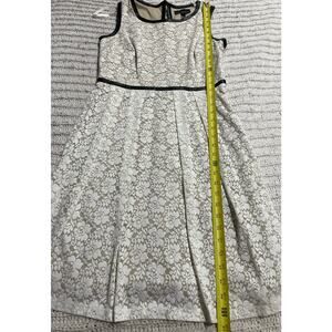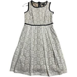 Cynthia Rowley Sleeveless Sheath Dress Lace Lined Knee Length Women's Size 6 White Tan Black Cocktail