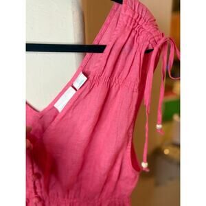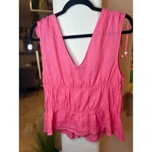 Cynthia Rowley Smocked Waist Sleeveless Linen Pink Blouse Size L 8-12