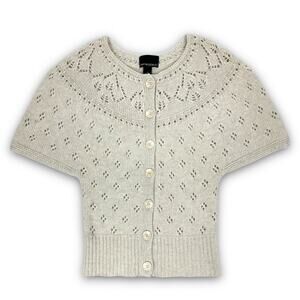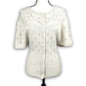 Cynthia Rowley Soft Angora Blend Cream Sweater Short Sleeve Button Front Size XS