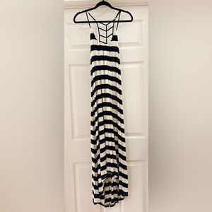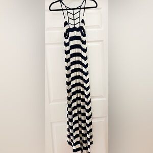 Cynthia Rowley Striped Ladder Back High Low Pleated Maxi Dress Blue White sz XS