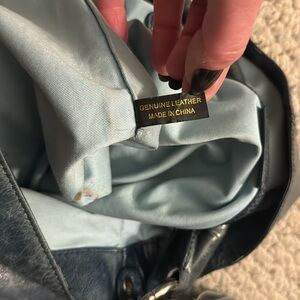 Elevate your style with this Cynthia Rowley teal leather bag with silver studs & hardware and leather tassels. Perfect for any occasion, this bag combines elegance and functionality. Magnetic top closure, slip pockets & zippered pockets inside. Good condition; interior has some staining, exterior is in great shape.
