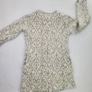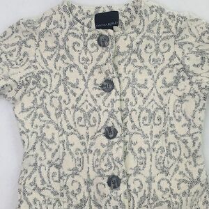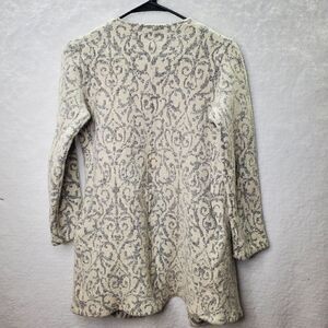 Cynthia Rowley fitted button-down grey and ivory damask printed sweater coat