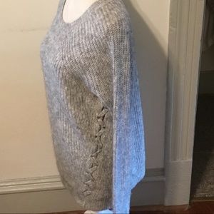 Cynthia Rowley women’s sweater is crafted from a cozy wool blend (45% acrylic, 30% wool, 25% nylon) in a soft heather gray knit. Features a classic crew neckline, long sleeves, and ribbed detailing at the cuffs and hem. Medium weight, warm, and versatile for layering.