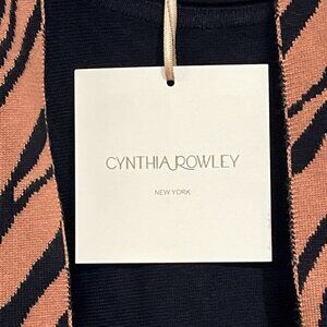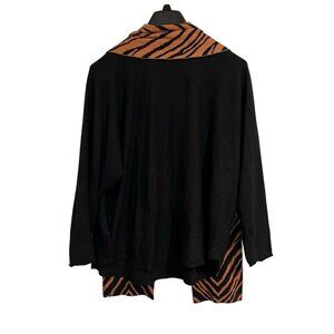Cynthia Rowley Sweater Women 3X Black Tunic Animal Print Detachable Scarf Office