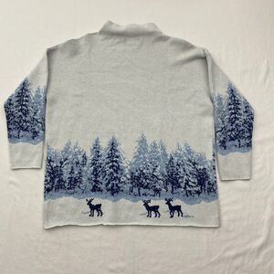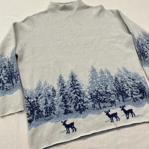 Cynthia Rowley Sweater Womens 1X Winter Scene Turtleneck Pullover Trees Deer