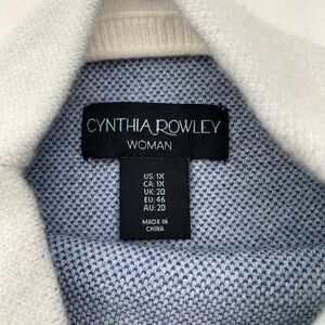 Cynthia Rowley Sweater Womens 1X Blue White Winter Scene Turtleneck Pullover