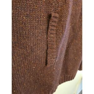 The Cynthia Rowley Sweater is a cozy and stylish women's cardigan crafted from a warm wool and acrylic blend in a maroon color with colored specks. This chunky-knit sweater features a collared neckline, long sleeves, and toggle buttons for closure. Perfect for casual occasions during the winter, fall, or spring seasons, this cardigan has a regular fit and includes pockets for added convenience. The Cynthia Rowley brand ensures quality and style, making this sweater a great addition to any woman's wardrobe.