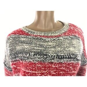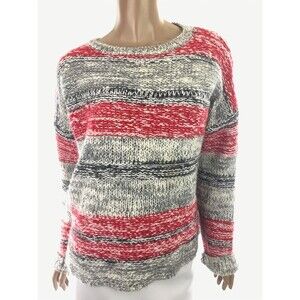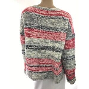Cynthia Rowley Sz XL Gray/Red Stripes Pullover Sweater Long Sleeve Cotton Blend