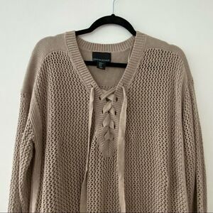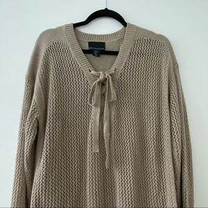 Cynthia Rowley Tan Lace Up Open Knit Sweater Size XL