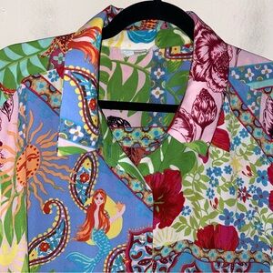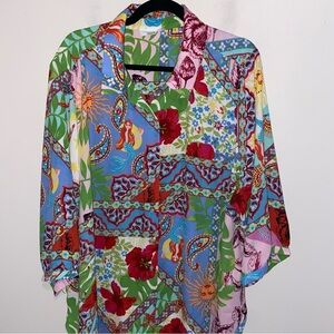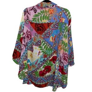 Cynthia Rowley Top Womens Plus Size 3X Boho Patchwork Multi Print Colorful Bohemian