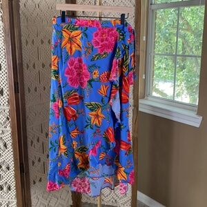 Cynthia Rowley Tropical Hibiscus Wrap Skirt Sarong Women's Size Large new tags
