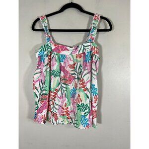 Cynthia Rowley Tropical Linen Tank Top Pink M Floral Preppy Chic Feminine Artsy