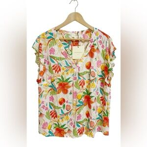 Cynthia Rowley Tropical Print 100% Rayon Blouse Top Size 1X NWT