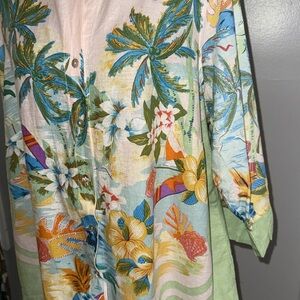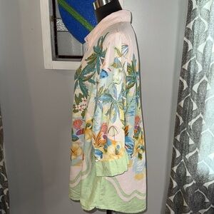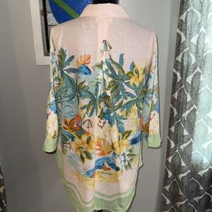 Cynthia Rowley Tropical Print 3/4 Sleeve Button Down Top SZ 1X