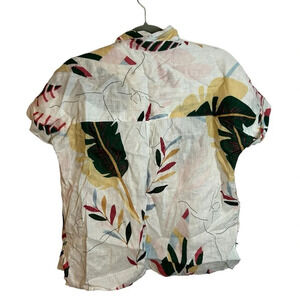 Pre owned excellent condition. Worn once or twice. Adorable tropical print short sleeve linen button down. WOMENS size small.