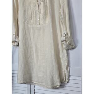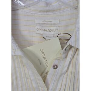 Cynthia Rowley Tunic M 100% Linen Off White Yellow Stripe Pleat Button Shirt Top