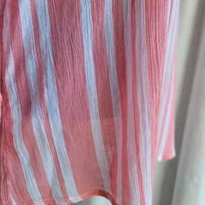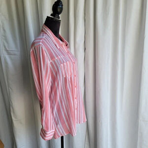 Cynthia Rowley Tunic Top Women's Coral Pink White Button Down Roll Tab Sleeve XL