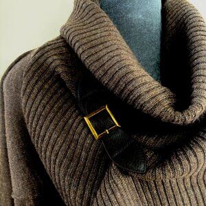 Cynthia Rowley Waterfall Cardigan with Leather Buckle Closure - Brown - Size M