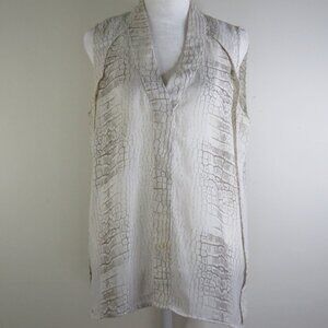 Cynthia Rowley White & Gray Snakeskin Print Sleeveless V-Neck Top Size S (C1277)