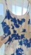 Midi dress with blue floral pattern. Sleeveless design with a flowing skirt.