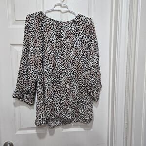 Cynthia Rowley Woman 1X Leopard Print Blouse Pink Black Animal Print Top