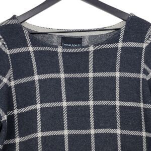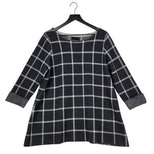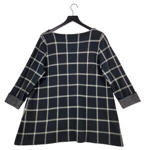 Cynthia Rowley Woman Wool Blend Sweater 1X Dark Gray Windowpane Plaid 3/4 Sleeve