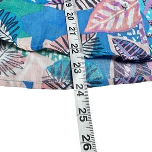 Pre-owned women’s Cynthia Rowley 100% linen floral tropical print cap sleeve button up shirt with mother of pearl buttons.