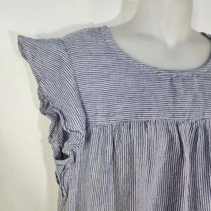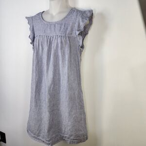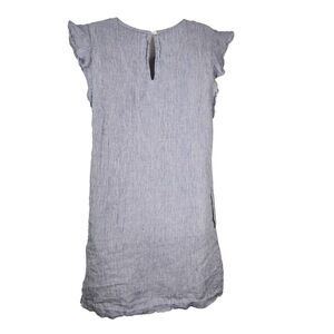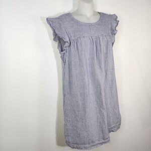 Cynthia Rowley Women Linen Dress Small Blue Striped Flutter Sleeve Shift Pockets