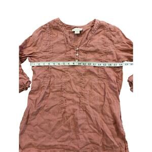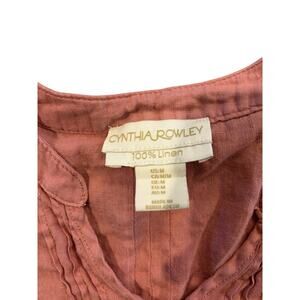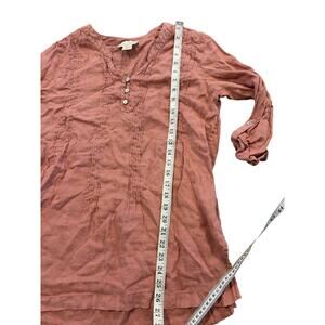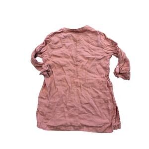 Cynthia Rowley Women Linen Pink Roll Tab Sleeve Tunic Blouse Lagenlook Medium