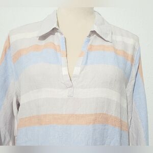 Cynthia Rowley Women's 100% Linen Tunic Top Medium M Striped 3/4 Sleeve Button