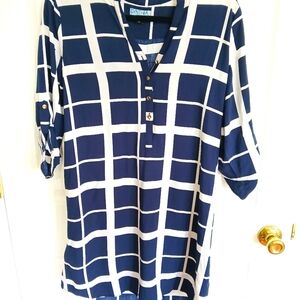 Cynthia Rowley Women's 3/4 Length Sleeve Navy And White Plaid Shirt Dress Size 8