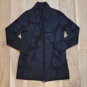 Cynthia Rowley Women's Black and Grey paisley print zip up sweater size Small