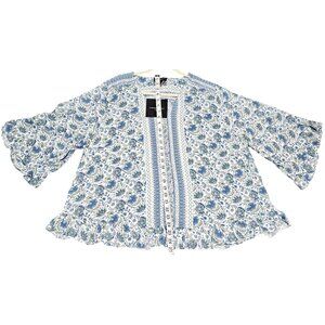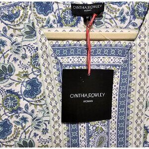 Cynthia Rowley Women's Blue & White Floral Print Blouse Size IX