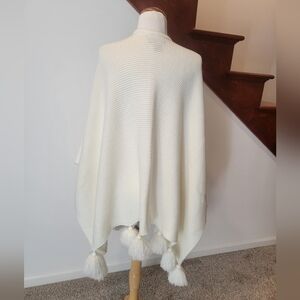 Cynthia Rowley Women's Ivory Knit Wrap Shawl with Tassel Pom Poms One Size