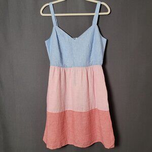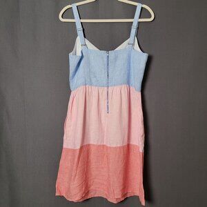 Cynthia Rowley Womens Linen Beachy Striped Colorblock Tiered Dress Size 8