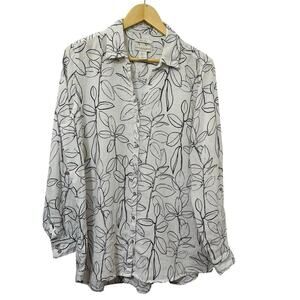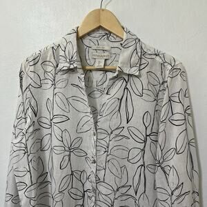 Cynthia Rowley Womens Linen Tunic Shirt Size L Roll Tab Sleeve Coastal Beachy