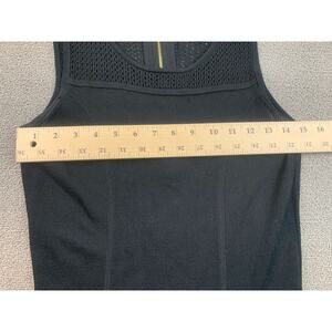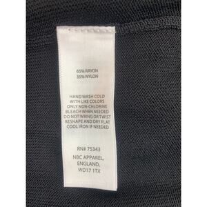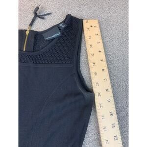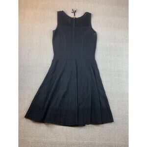 Elegant sleeveless knit dress by Cynthia Rowley in black, featuring a fitted bodice with subtle seam detailing, a flared skirt, and mesh knit accents at the neckline and hem for a chic textural contrast. The back features a discreet zipper closure—ideal for elegant casual wear or comfortable evening ensembles.