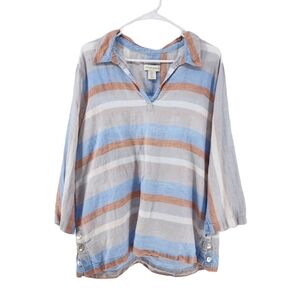 Cynthia Rowley Women's Multi Stripe V-Neck Linen Top - XL