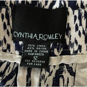 These Cynthia Rowley shorts are in excellent pre-owned condition, showing no stains, tears, or flaws. They feature a stylish black and white pattern and are made from a comfortable linen-rayon blend. Perfect for warm weather!