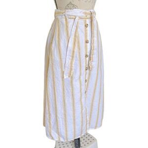 Cynthia Rowley Womens Skirt 100% Linen Striped Yellow Pockets Tied Midi Medium