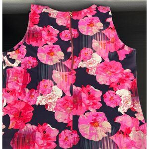 Cynthia Rowley Women’s Sleeveless Floral Blouse Size L –Navy Pink Stretch Tank