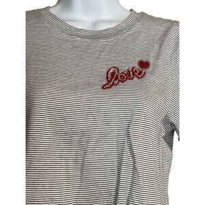 Cynthia Rowley Womens Striped T-Shirt Love Embroidery Size XS Valentines Day