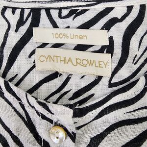 Cynthia Rowley Womens Top 2X 100% Linen Zebra Print Button Long Roll Tab Sleeve