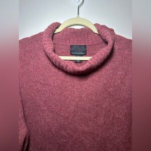 Beautiful wool blend cowl neck sweater with ribbed detail on neck, bottom of sleeves and bottom of sweater.